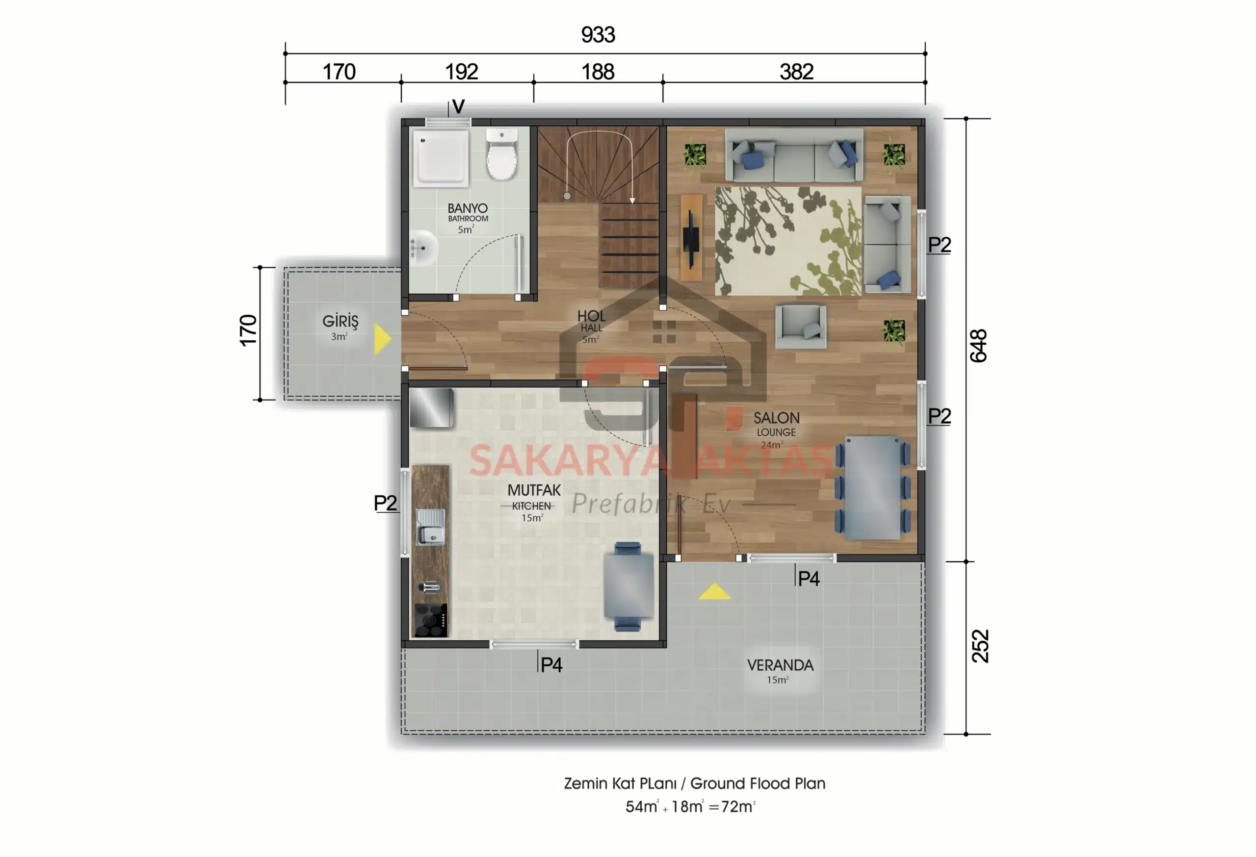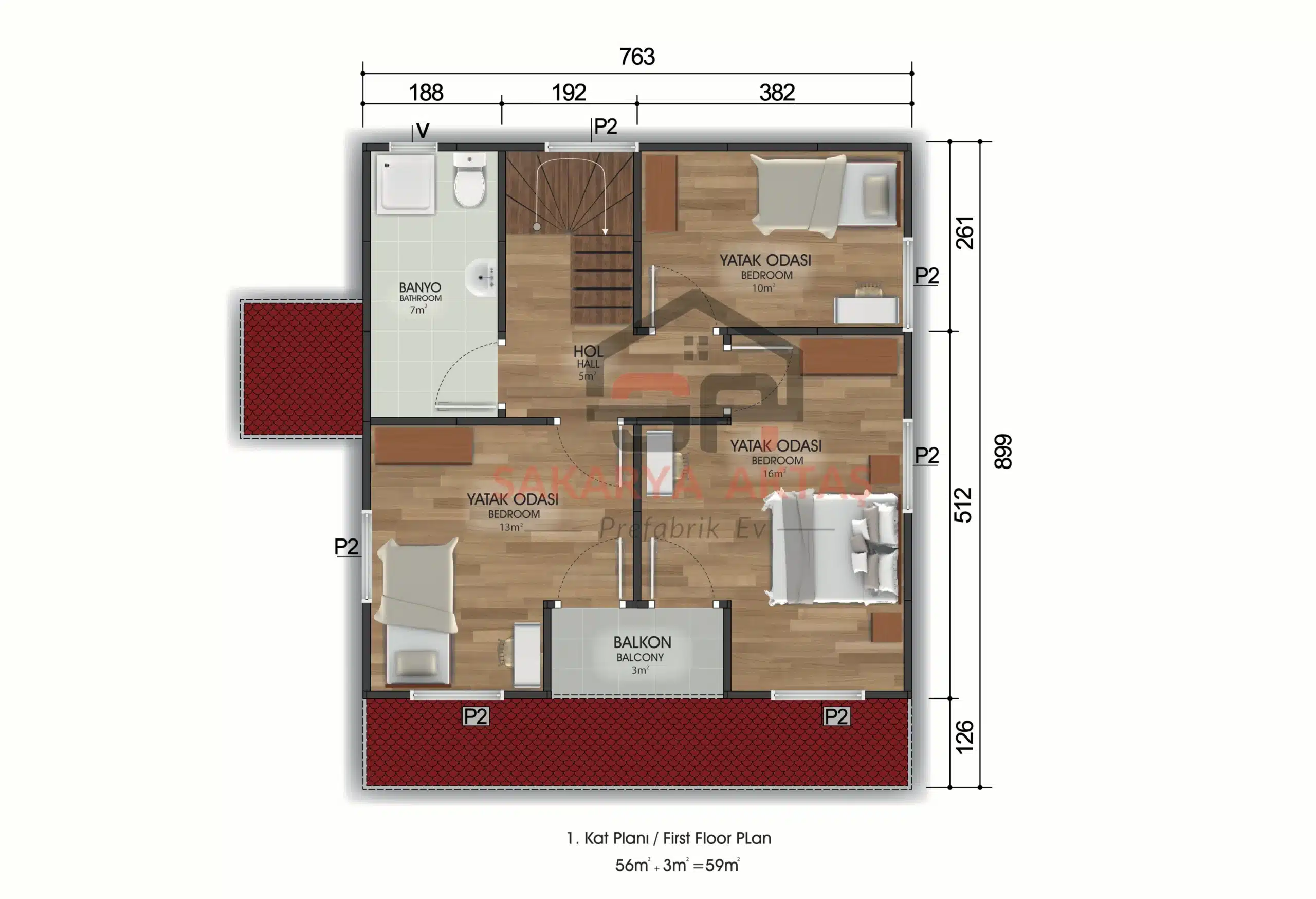 131 m² 3+1 Çift Katlı Prefabrik Ev – Modern Estetik ve Geniş Alan